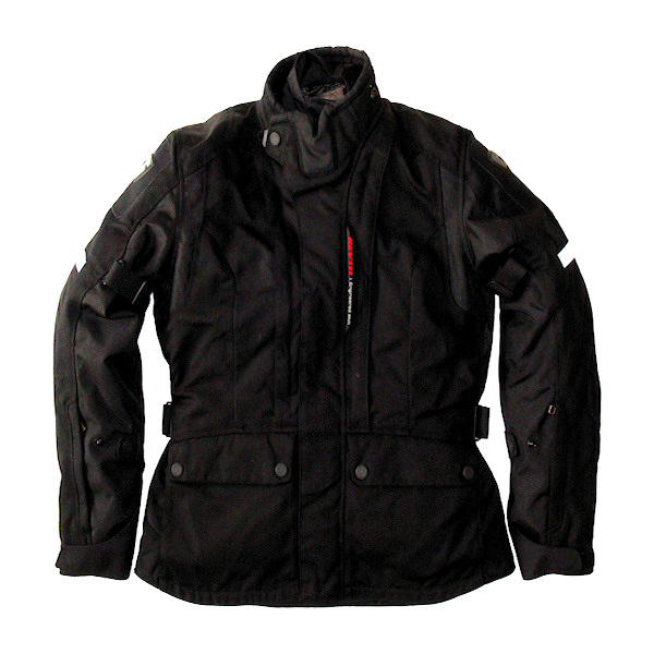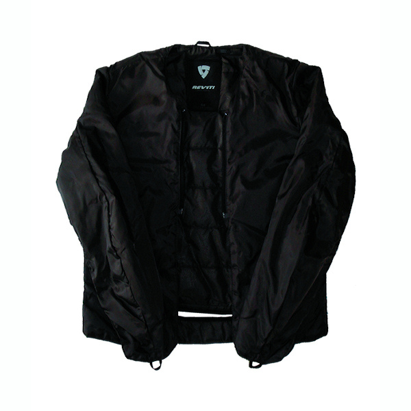 The other half wanted a jacket that was a bit more, (how should I put it) "stylish" that was more suited to the feminine form. Keeping a low profile in the shop, (Harpers of Leigh-On-Sea) I let her decide what she wanted so there could be no arguments later. What she opted for was the Rev'it "Siren" textile jacket that has four different set up arrangements as it has two removable liners. Firstly there is a thermal quilted liner (click the picture for a larger image). Secondly there is a waterproof liner, (see picture below). You can fit them in any combination that you wish. Just the jacket with no liners at all, jacket and thermal quilted liner only, jacket and waterproof liner only, or jacket with both quilted and thermal liners together. This means there are rather a lot of zips, press studs and velcro to contend with and the liners need to be fitted in the right order. There is a nice large rear pocket in the jacket should you wish to remove the liners and take them with you. There are numerous zips that reveal air vents should you want more airflow on a hot day. Features: