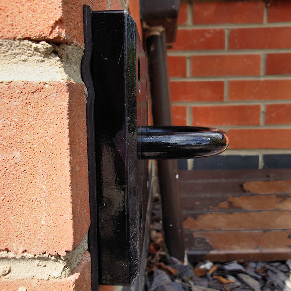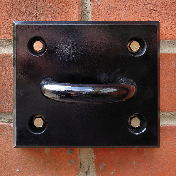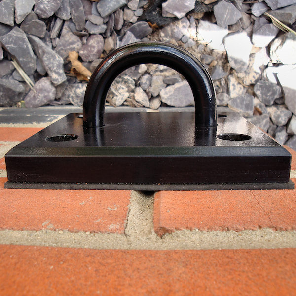 This device is designed for bike security with the intention of preventing theft or unauthourised removal of the motorcycle and is already featured in the homemade bike bits section. The wall anchor is bolted to a wall with heavy duty rawl bolts, the counter bores for the bolts are then blanked off to prevent bolt removal. The chain is passed through the hardened metal loop and through the motorcycle and secured with a heavy duty padlock. Other Views: