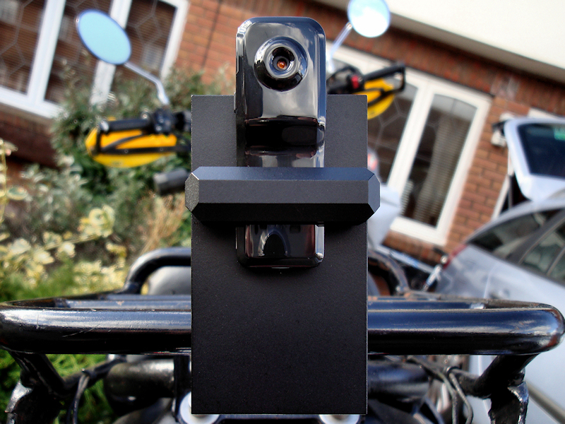 Evolution:It is the nature of prototype designs that as you develop ideas new ones come to mind which means things need to be modified from the original idea. This bracket, (a derivative of the Mark II bracket) utilises a "Vee" clamp method instead of a dedicated diameter to clamp the bracket in different locations. This gives the chosen place to house the bracket more scope as the "Vee" can accommodate a different diameter range from 10mm up to 16mm without loosing clamping ability where as the Mark II bracket could only clamp to diameter 10mm fixing locations. I have also added a 1/4" UNC x 20 thread on either side of the bracket body for standard camera mount fixing for other camera holding devices available, (tripod, ram mount etc).The New Placement:The idea behind this design is to place the bracket and camera in multiple positions without to much bother. Utilising a "Vee" clamp system the bracket along with the camera can be placed anywhere where there is a handy diameter or post to clamp to, (rear racking system tubing for example) this way some rear facing footage can be obtained.The Pivot Bracket:My design for the bracket and clamp are somewhat over engineered like previous designs simply because I have access to the machinery and materials to be able to do the job. The main important dimension is for the slot that the camera sits in, the rest is open to adjustment.