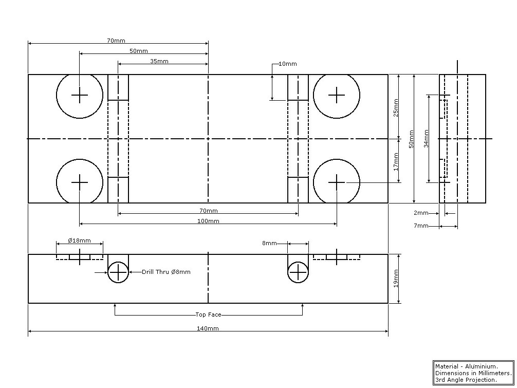 - Machine a piece of Aluminium or similar material to 140mm x 50mm x 19mm.