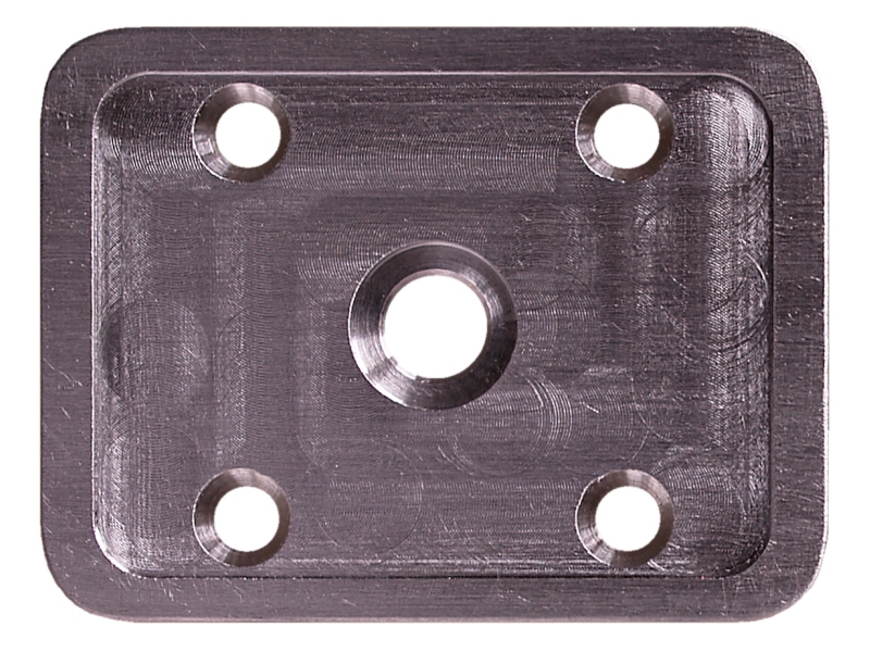 Wedge Plate Top View With Counterbored Hole To Clear 1/4" UNC Bolt Head And M4 x 0.7mm Tapped Holes.
