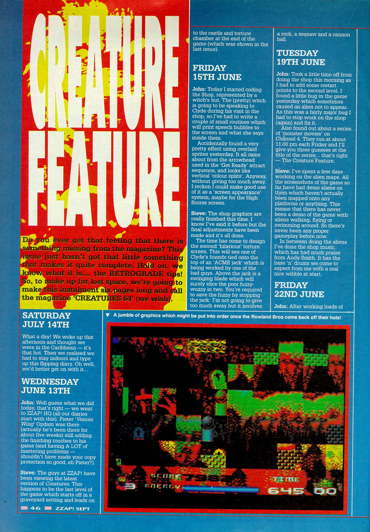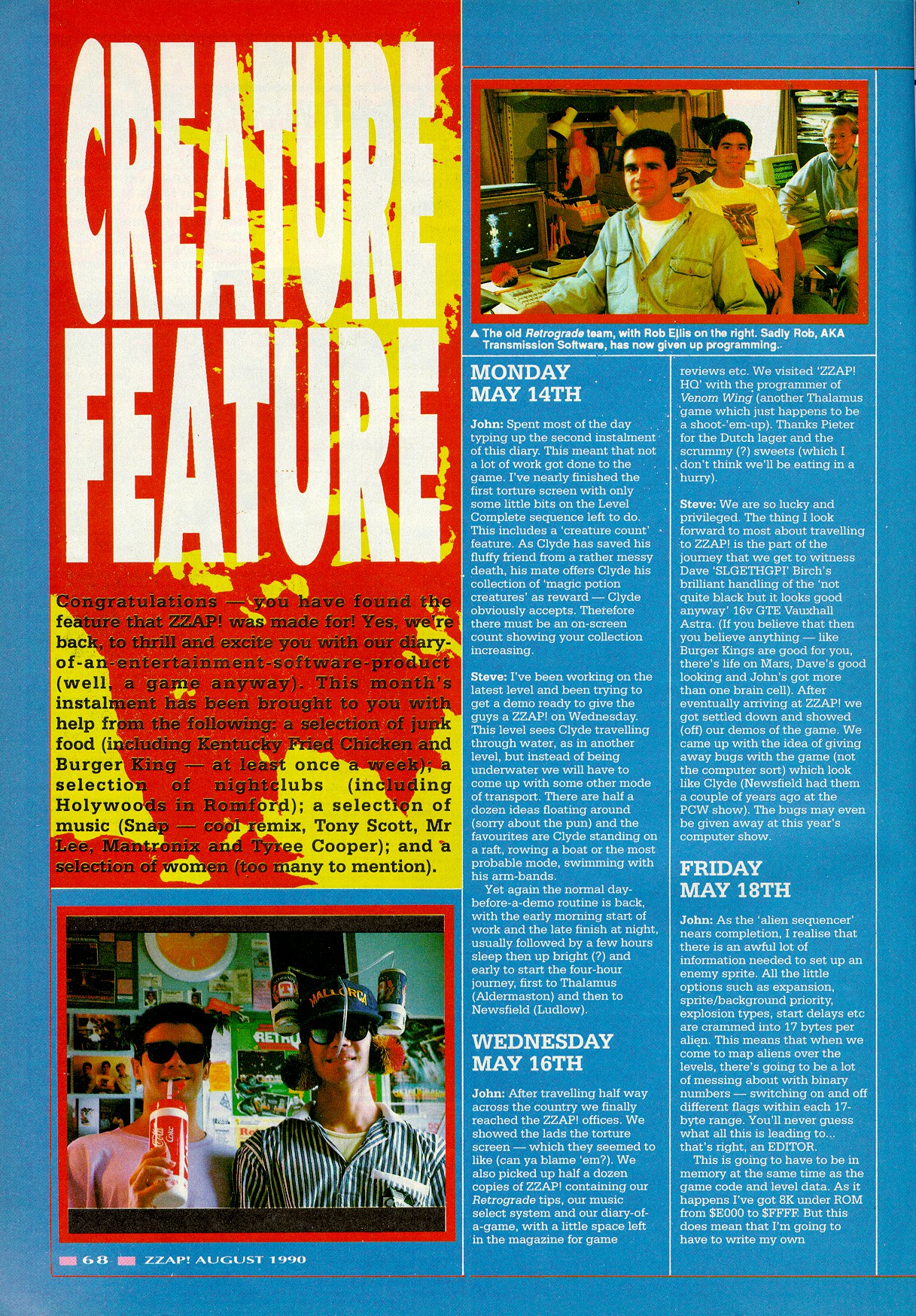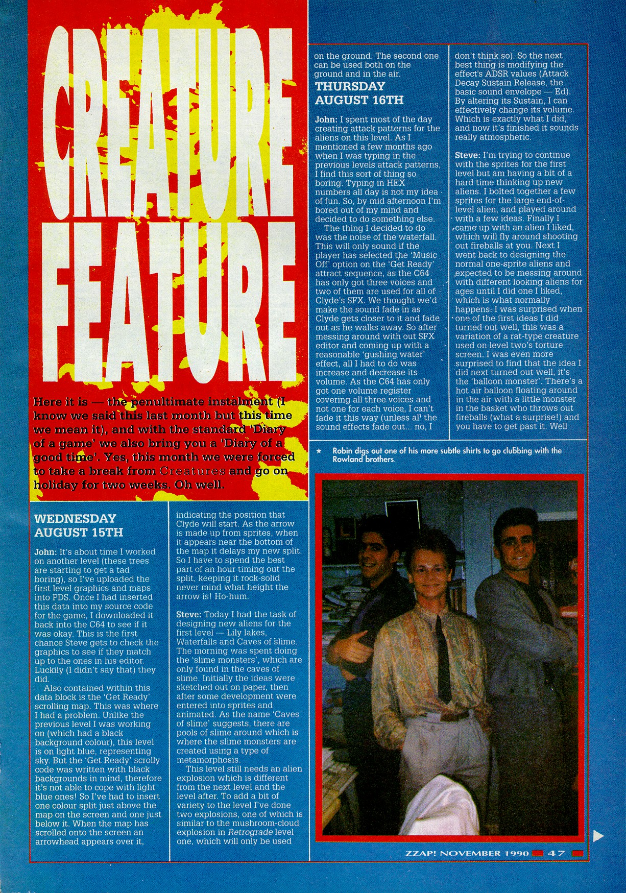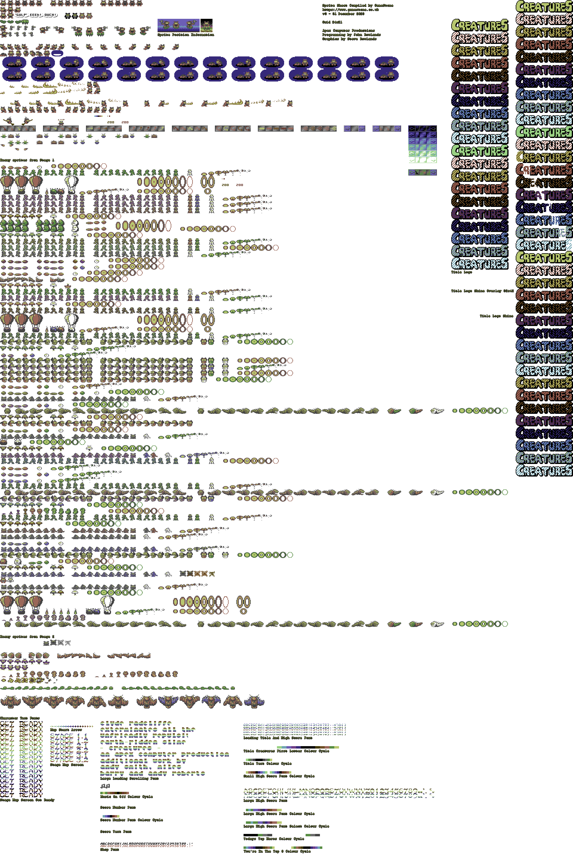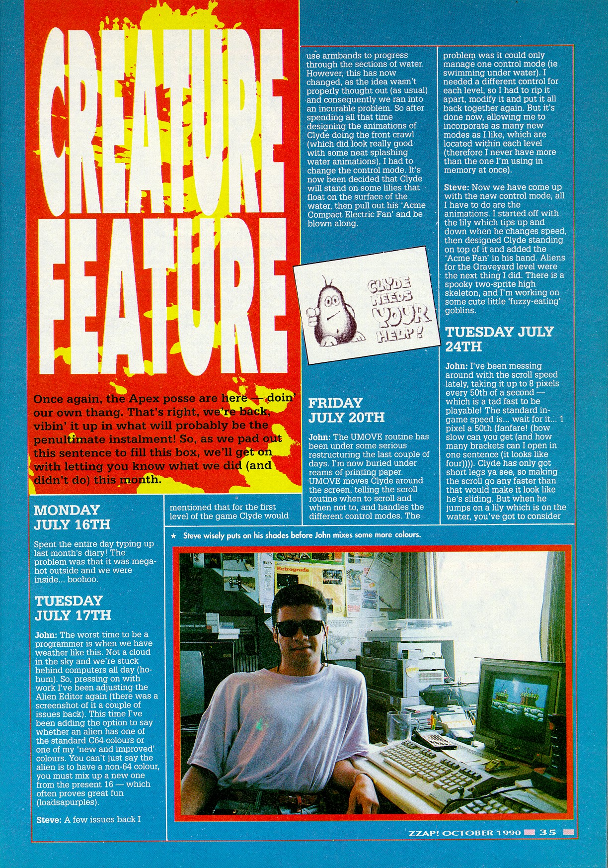 Creatures has been created with the help from the following: Dave 'silky' Birch and his extended deadlines (and loadsahype), Andy Smith, the ladz at ZZAP!, Andrew Roberts, Miles Barry, PDS, JMJ, TOTS & Hollywoods, Bud. & Tennent's Super and, of course, the discovery of Fuzzy Wuzzies... remember, Clyde needs YOUR help!