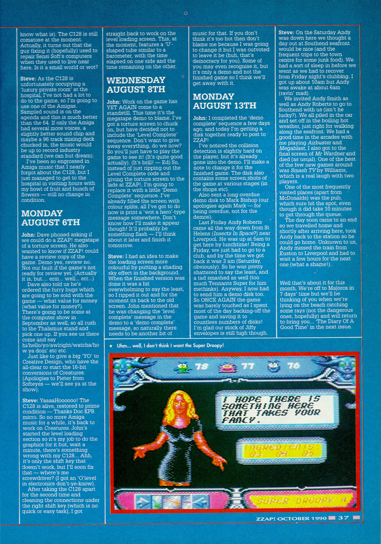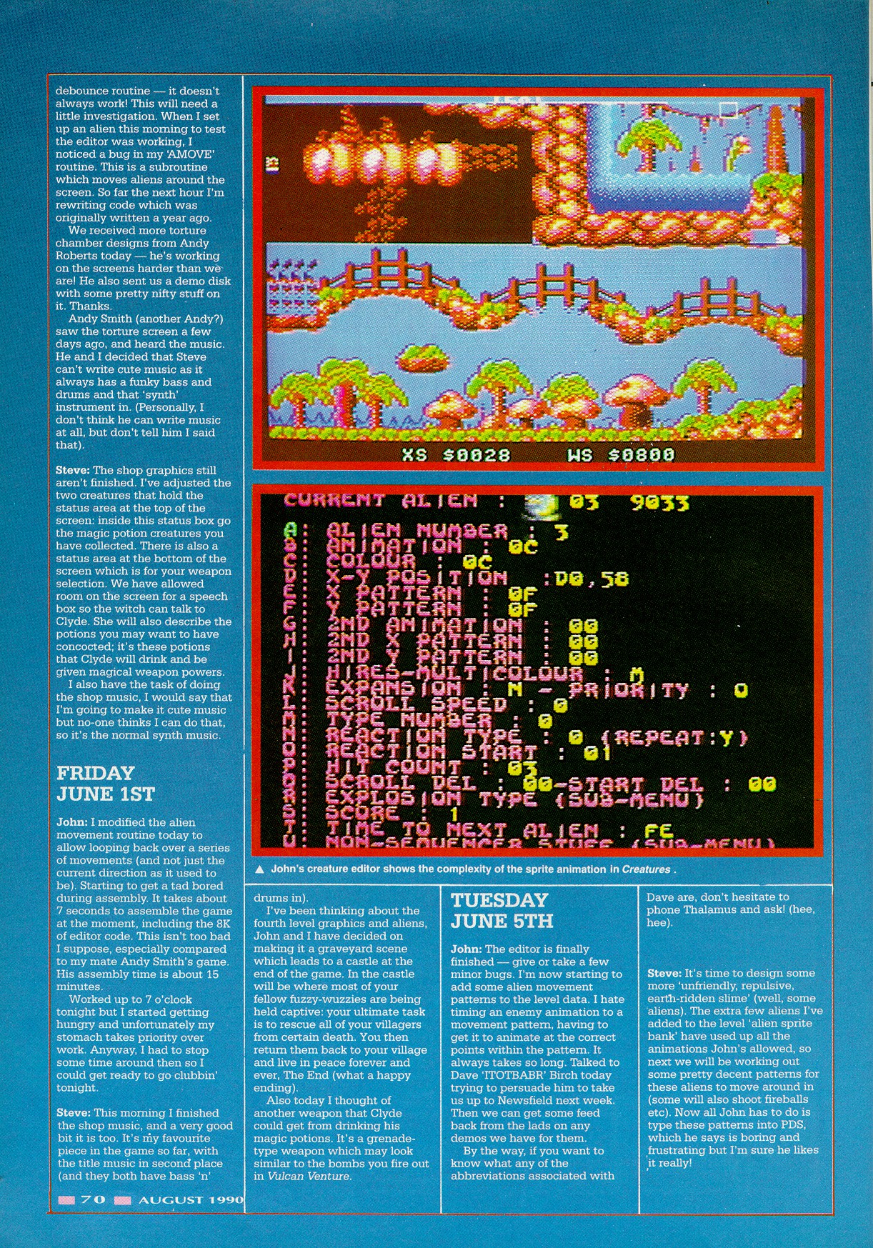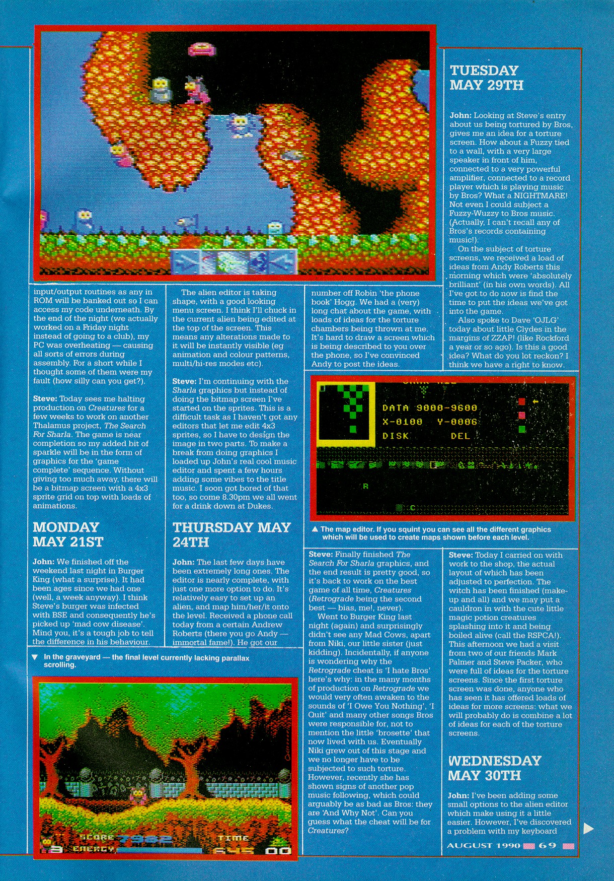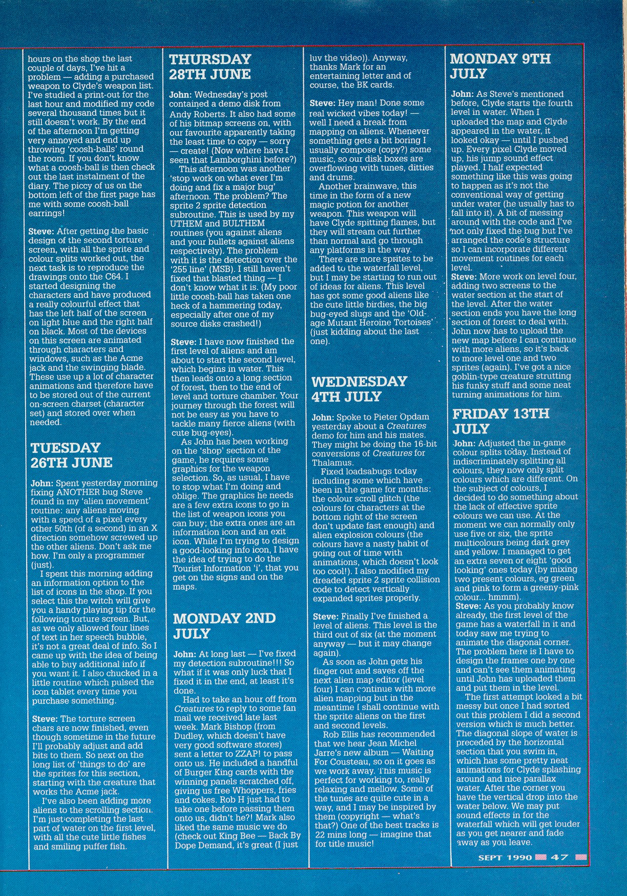 Here it is - the penultimate instalment (I know we said this last month but this time we mean it), and with the standard Diary of a game'' we also bring you a Diary of a good time''. Yes this month we were forced to take a break from Creatures and go on holiday for two weeks. Oh well.